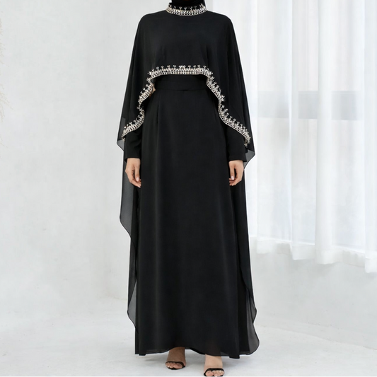 Asma Embellished Cape Dress - Black
