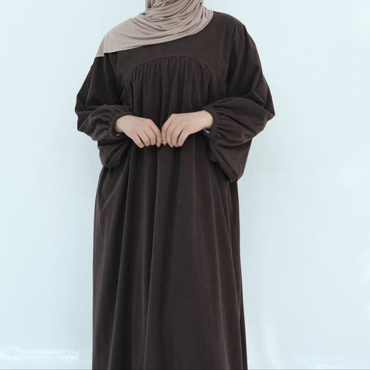 Corduroy Cuffed Sleeve Abaya - 4 Colours