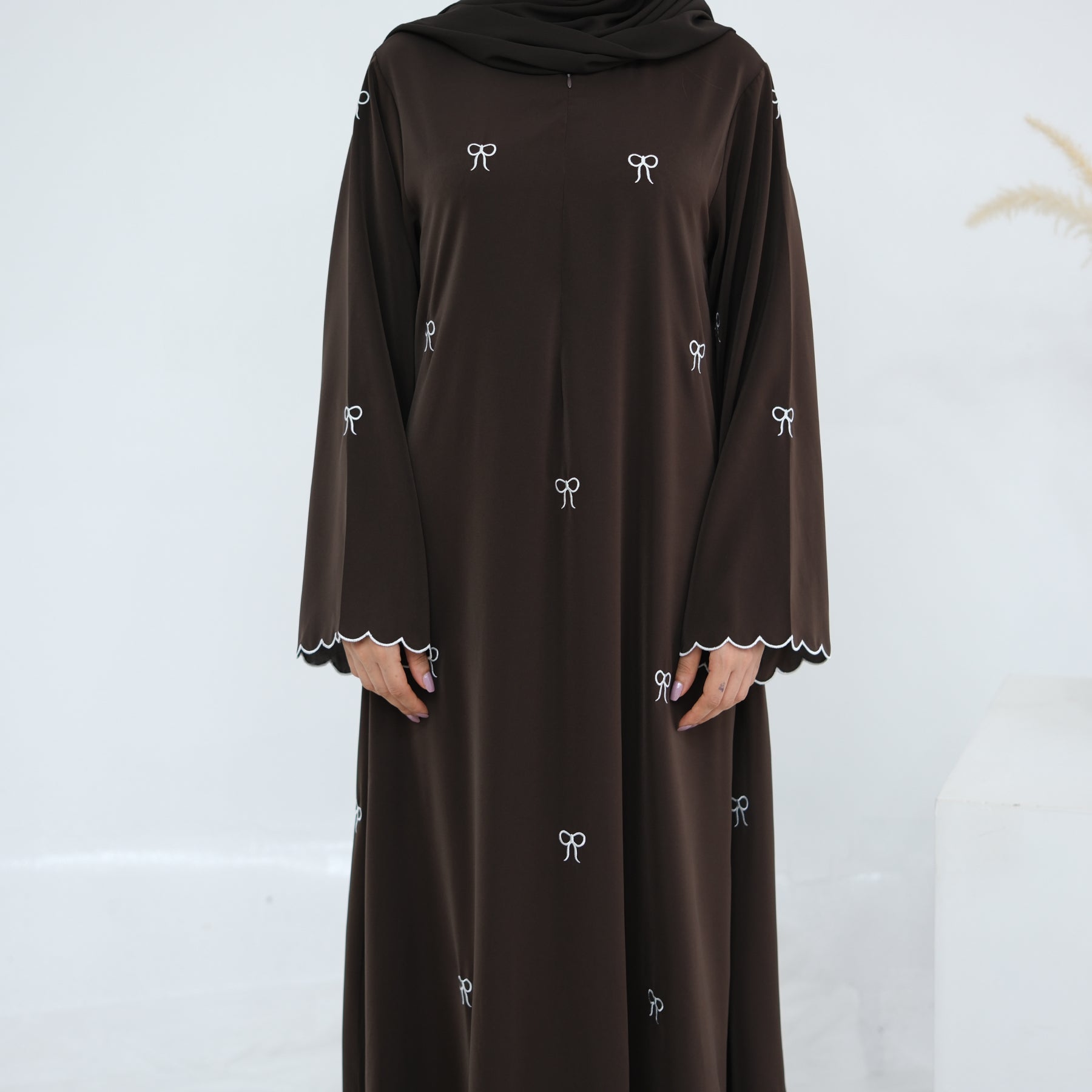 Bow Embroidered Closed Abaya - 2 Colours